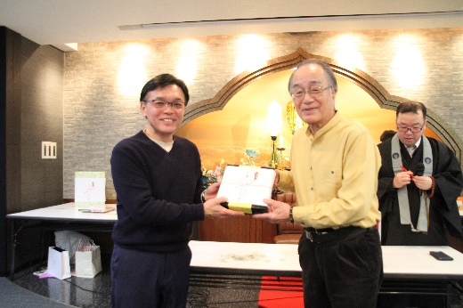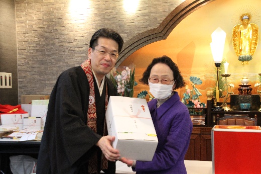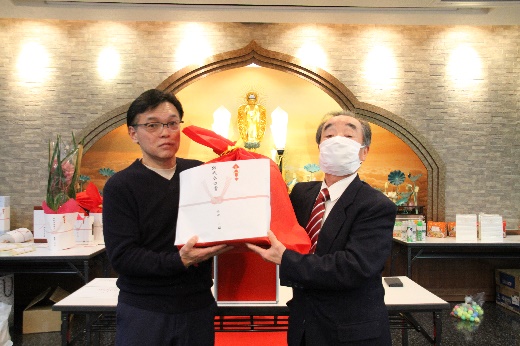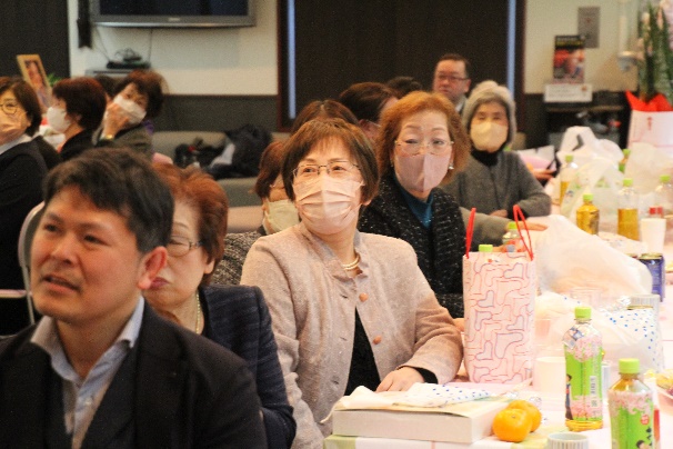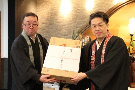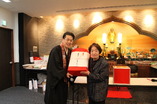 新年会はいつもお寺のためにご尽力いただいている役員の皆様や関係者の皆様に、わずかな時間ですが、楽しいひとときを過ごしてもらいたいという思いから開催しております。(住職記)