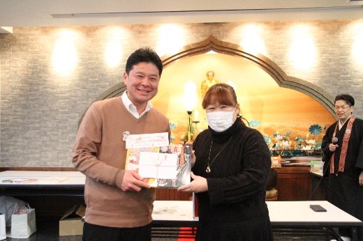 お食事の席に抽選番号を仕込み、若い数字から順番に抽選していただきました!