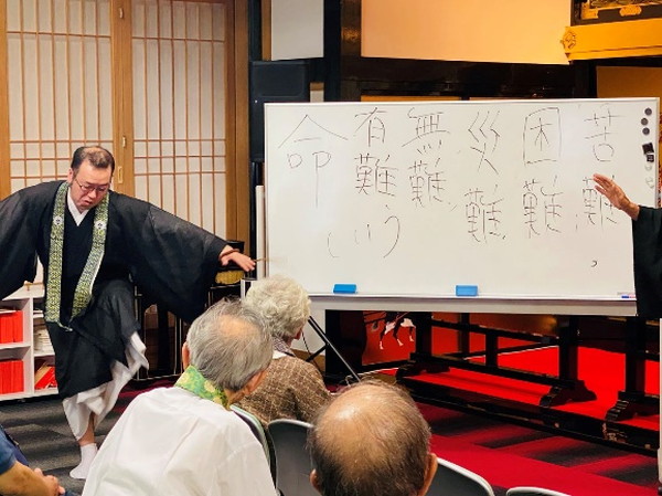 あるお座の日に布教使さんがタレントのゴルゴ松本さんが少年院に慰問し、漢字の解説から大切なことを教えているというお話しをして、ゴルゴさんを知らない方へ説明するのに、「あれなんだっけ?」と聞くと、テルオカ君が、「いのちですね。」と決めポーズをしてくれました。すると粟井さんが、「ワシも出来るぞ。」といって決めポーズをしてくれました。(ちょっと違う感じもしますが・・・)御年93歳!いつまでもお元気で!!