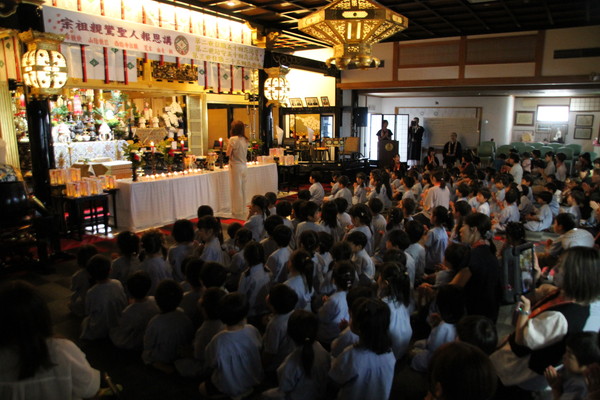 布教使の荒本先生から報恩講の意味としんらんさまのご労苦、そしてののさまがいつでもどこでもみんなを見ていて下さるよ! とお話しいただきました。こども達は目をまんまるにして、真剣にうん、うんと頷きながら聞いていたのが印象的でした。