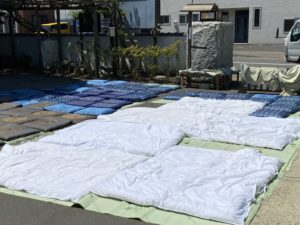 今日は清掃奉仕で、毎年恒例の布団干しをしました。