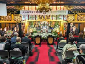 最終日、午前11時より満日中法要(御満座)がお勤まりになりました。今年は特に「第二世住職・坊守五十回忌法要、第三世住職二十五回忌法要」を二日目にお勤めさせていただき、多くの皆様にご参詣をいただきました。お寺にとって年間で一番大切な仏事である報恩講法要を総代さんをはじめ、役員さん、婦人会の皆さん、壮年会の皆さん、そして多くのご門徒の皆様のお力添えを頂戴し、満日中のご法要をお迎えさせていただきました。感無量の中に御導師を勤めさせていただきました。