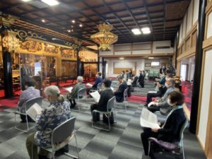 安楽寺では毎月5日の常例法座、16日の親鸞聖人のご命日に命日講(めいにちこう)という行事をお勤めしています。