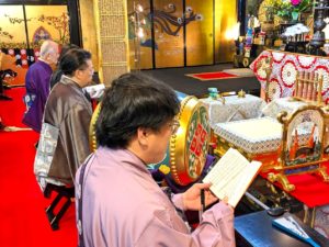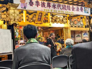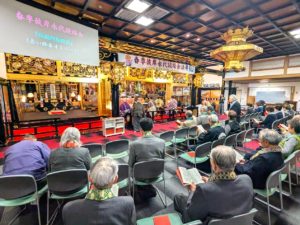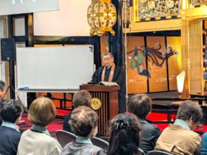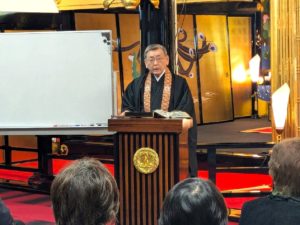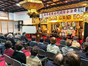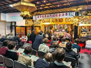 三日目は「仏説阿弥陀経」をおまいりいただいた皆様とご一緒にお勤めいたしました。阿弥陀経はもうみなさん読み慣れているので、とてもスムーズなおつとめでした。法要終了後、住職よりご挨拶をさせていただきました。布教使様は三日目も分かりやすく浄土真宗の深きところをやさしくご解説下さいました。有難うございました。