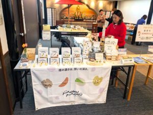 この度は、いつもお世話になっております「あみだ堂仏具店」の出店、そして徳尾商事さんの「スモークナッツ」、CHOPPISHIさんの「焼きいも 」の販売、境内ではFUJII café(ふじいカフェ)さんのキッチンカー(お団子とおしるこ販売)、そしてpuccuri crepeさんの「クレープ」、茜iroさんの米粉を使った「シフォンケーキ」の販売を開催いたしました!1階ホールで提供された呈茶接待も大盛況のにぎわいをみせてくださいました。